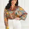 GUESS נשים חולצת אדלייד אקולוגית F8RV1025 לבוש פריחת אקווארל