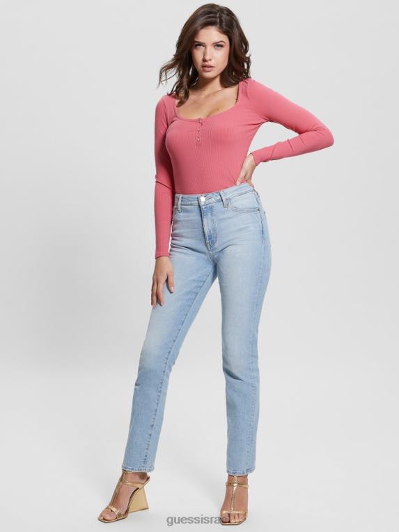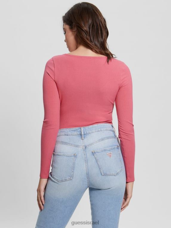 GUESS נשים אקו קארלי הנלי עם שרוולים ארוכים F8RV1638 לבוש סחף ורוד