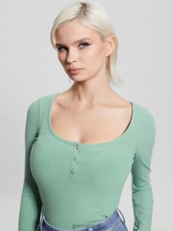 GUESS נשים אקו קארלי הנלי עם שרוולים ארוכים F8RV1640 לבוש ירוק חיוני