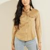 GUESS נשים אקו קארלי הנלי עם שרוולים ארוכים F8RV1498 לבוש לבן טהור