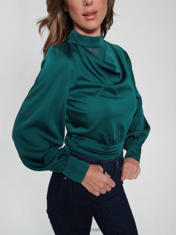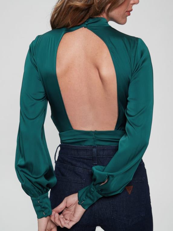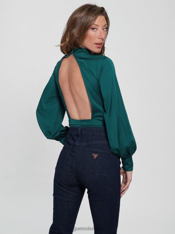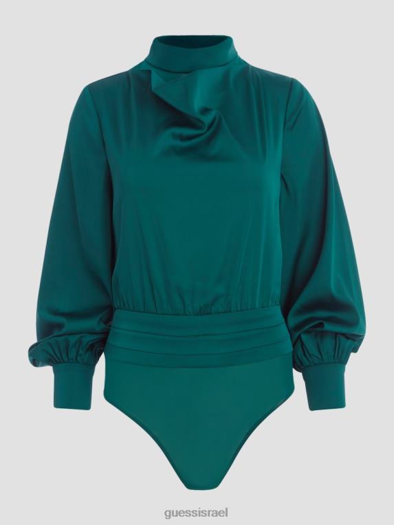 GUESS נשים בגד גוף עם צווארון מדומה קייטי אקולוגי F8RV1192 לבוש צהבהב מלכותי