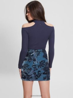 GUESS נשים בגד גוף eco milly כתף קרה F8RV1522 לבוש מולטי כחול מושחר