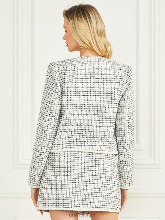 GUESS נשים בלייזר טוויד פרובנס F8RV1926 לבוש טוויד לבן ושחור