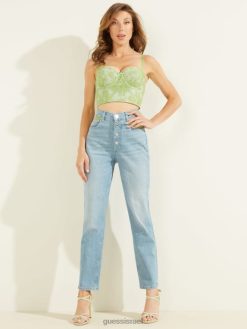 GUESS נשים ג’ינס אמא חשוף תחרה F8RV214 לבוש שטיפת תחרה ירוקה