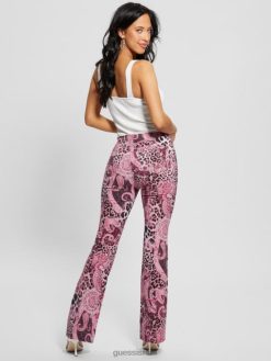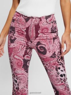 GUESS נשים ג’ינס פופ משנות ה-90 עם מותניים מתרחבים F8RV117 לבוש שטיפת קשמיר סגולה