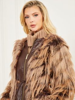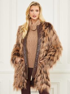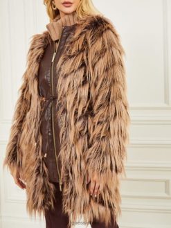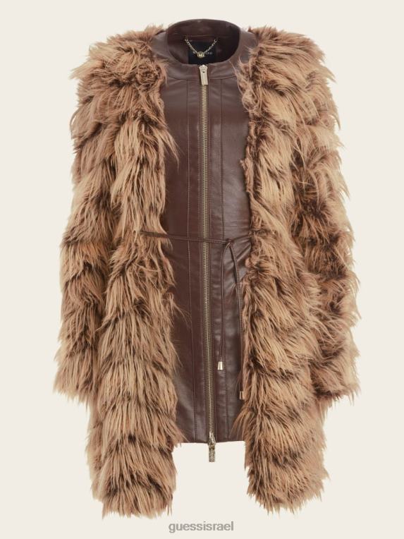 GUESS נשים דינה מעיל מדובלל F8RV1977 לבוש בורבון כהה עם קלאסי