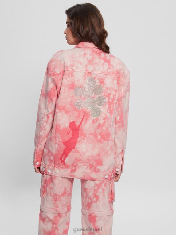 GUESS נשים ז’קט ג’ינס במידות גדולות F8RV216 לבוש צבע עניבה ורוד בוקר