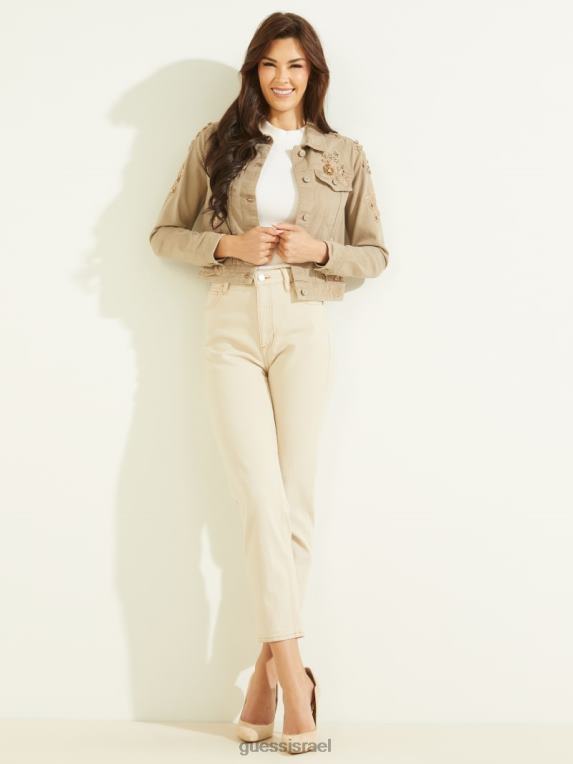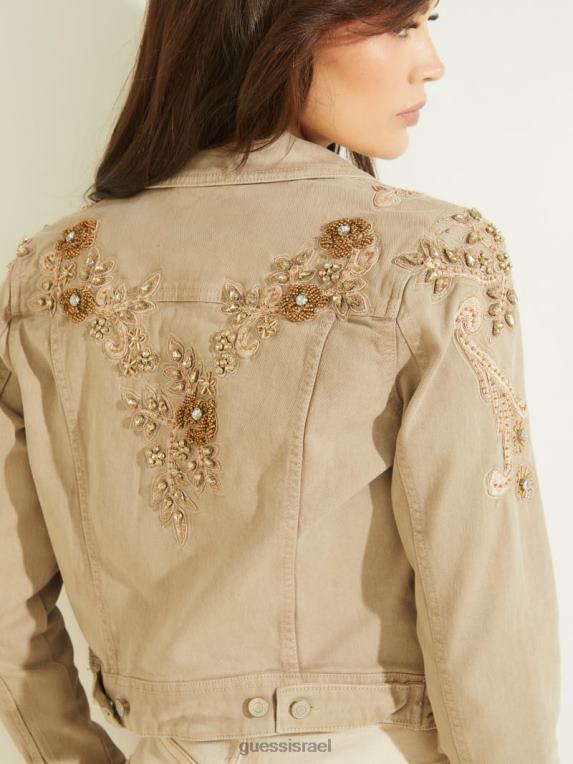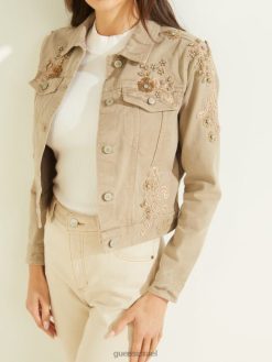 GUESS נשים ז’קט ג’ינס מעוטר אדוריה F8RV253 לבוש רום זהוב