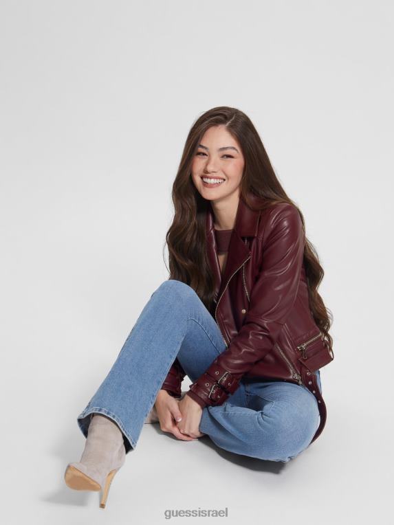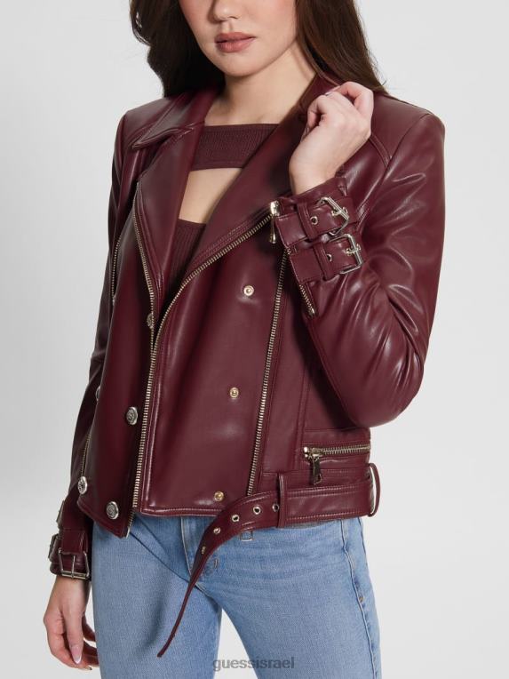 GUESS נשים ז’קט מוטו דמוי עור אוליביה F8RV1790 לבוש מולטי יין מיסטי