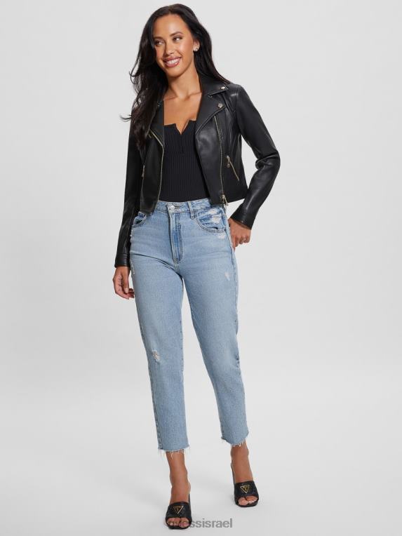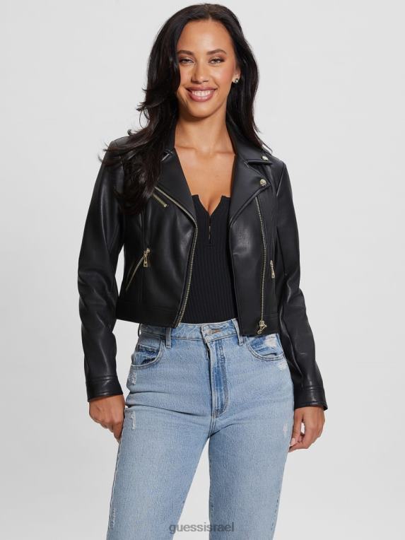 GUESS נשים ז’קט מוטו קצוץ ארס F8RV1752 לבוש מולטי שחור ג’ט