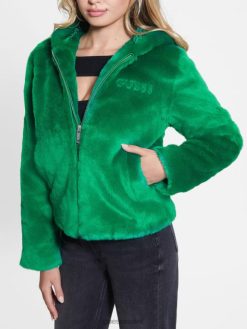GUESS נשים ז’קט מלאי פרווה של dafne F8RV1915 לבוש ירוק עמק
