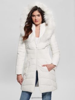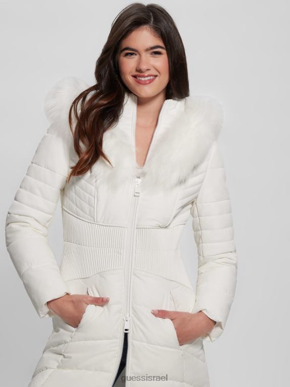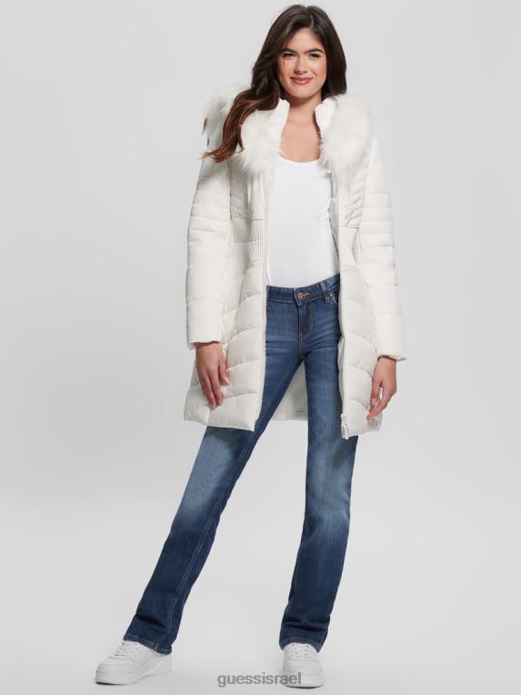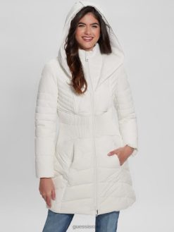 GUESS נשים ז’קט מרופד אקולוגי אוקסנה F8RV1964 לבוש לבן טהור