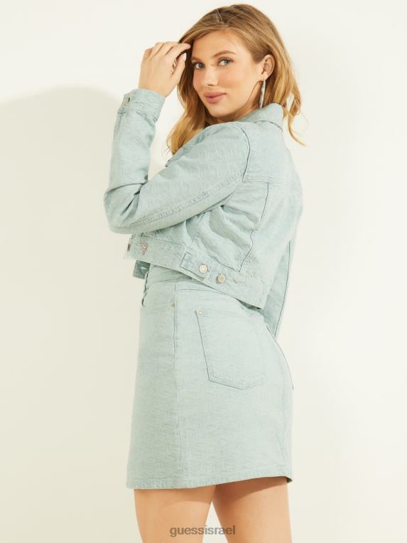 GUESS נשים ז’קט קצוץ קוביות F8RV235 לבוש קוביית צבע אקווה