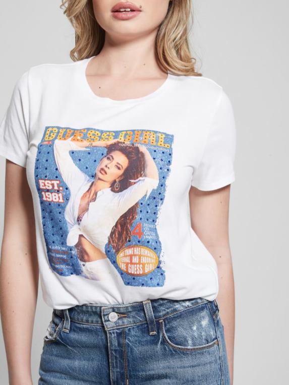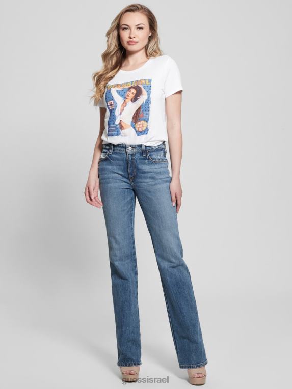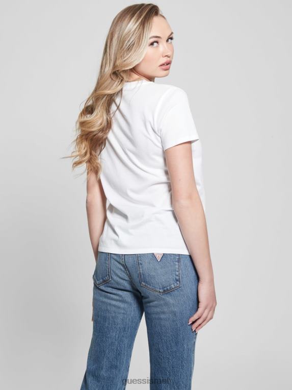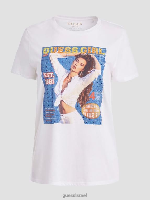 GUESS נשים חולצה גרפית קלה לילדה F8RV1102 לבוש לבן טהור
