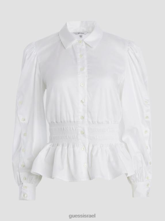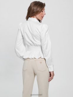 GUESS נשים חולצה עם חלוק מנדי F8RV1681 לבוש לבן טהור