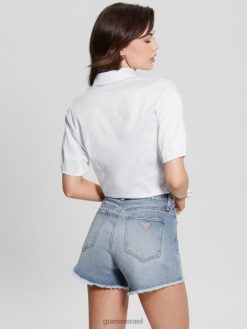 GUESS נשים חולצה עם שרוולים קצרים F8RV1178 לבוש לבן טהור