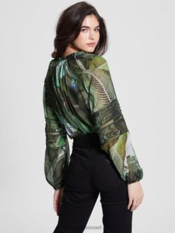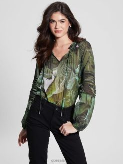GUESS נשים חולצה שקופה עם שרוולים ארוכים F8RV1689 לבוש גן טרופי מואר ירח