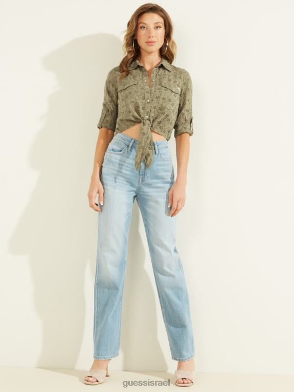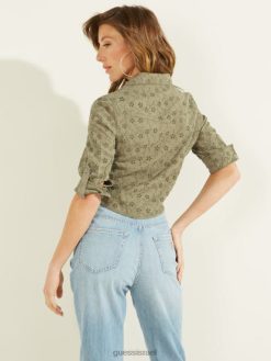 GUESS נשים חולצת ג’ינס עילית F8RV291 לבוש ירוק פרח