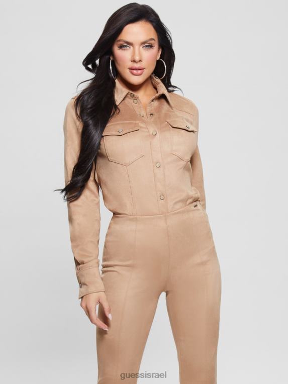 GUESS נשים חולצת ווסטרן מבד זמש של דייזי F8RV1109 לבוש חול רטוב