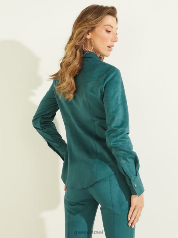 GUESS נשים חולצת ווסטרן מבד זמש של דייזי F8RV1450 לבוש צהבהב מלכותי