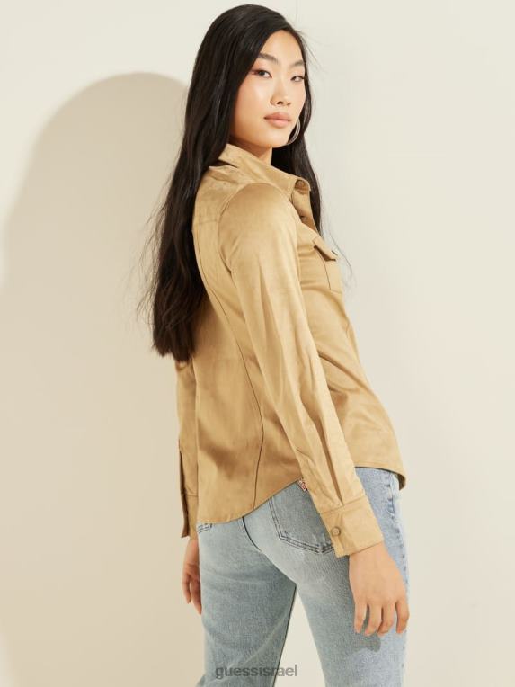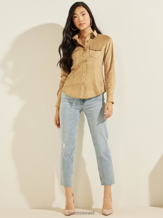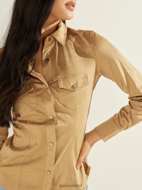 GUESS נשים חולצת ווסטרן מבד זמש של דייזי F8RV1501 לבוש דבש הרים
