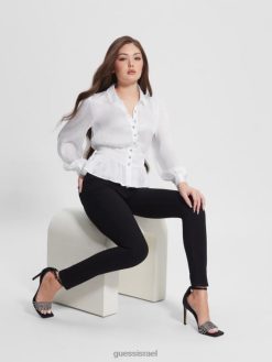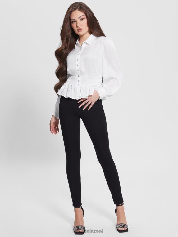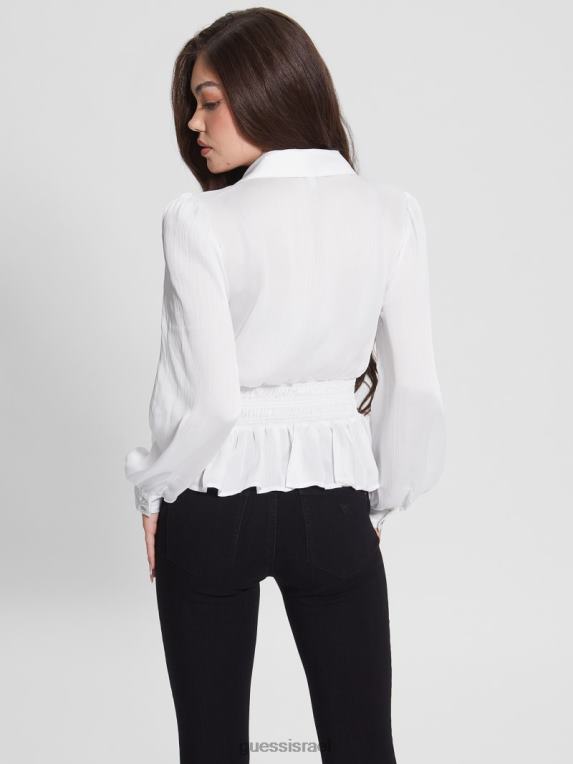 GUESS נשים חולצת כפתור קריסטל אקו מנדי F8RV1526 לבוש לבן טהור