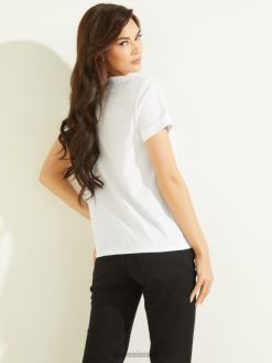 GUESS נשים חולצת לוגו עם אזיקים אקולוגיים F8RV1041 לבוש לבן טהור