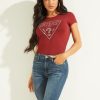 GUESS נשים חולצת לוגו תסריט F8RV1581 לבוש מיץ סלק אדום מולטי