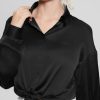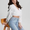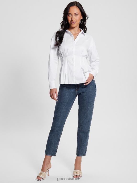 GUESS נשים חולצת מחוך אגטה עם שרוולים ארוכים F8RV1000 לבוש לבן טהור