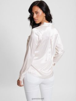 GUESS נשים חולצת סאטן אקולוגית לינדה F8RV926 לבוש אבן אילמת