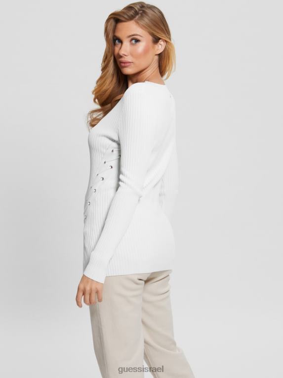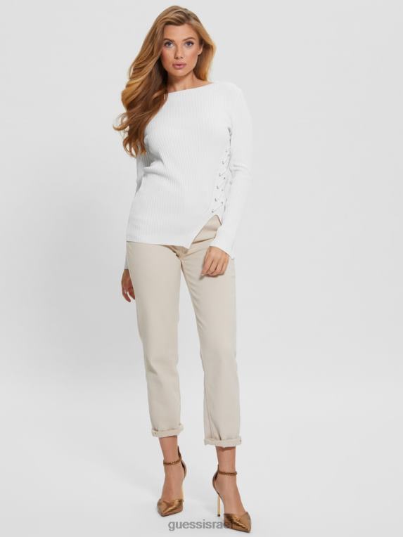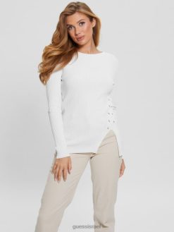 GUESS נשים חולצת סוודר עם צווארון עגול של Irmine F8RV1613 לבוש לבן שמנת