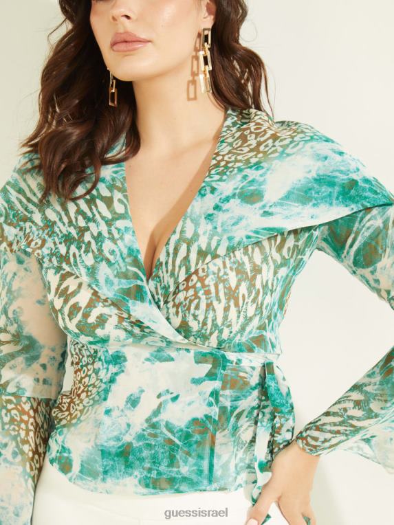 GUESS נשים חולצת ערבה F8RV1525 לבוש צהבת אהבה מתחת למים