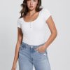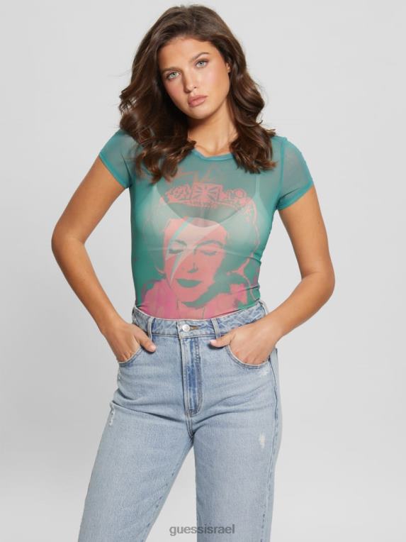 GUESS נשים חולצת רשת גרפית אקו קווין F8RV1118 לבוש רב מים קריביים