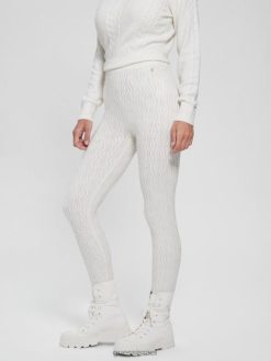 GUESS נשים סוודר סרוג בכבלים מעורב של טרזה F8RV1563 לבוש יונה לבן