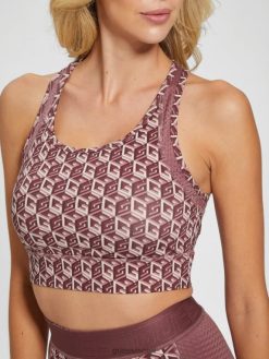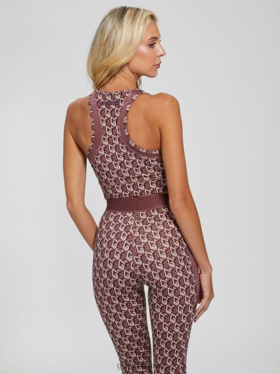 GUESS נשים חלק עליון אקטיבי של אקו דריה F8RV1469 לבוש קוביית g שילוב אדום