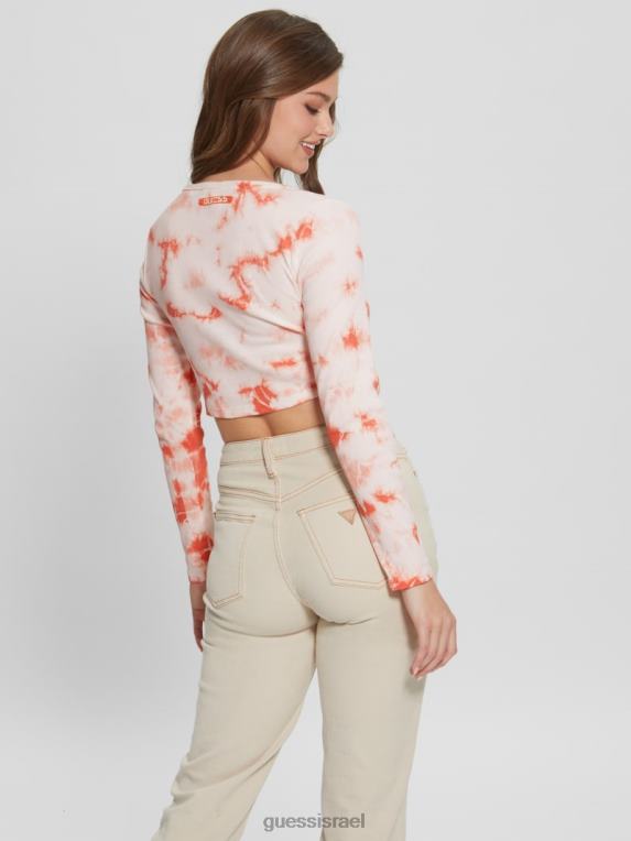 GUESS נשים חלק עליון גרפי של ארנב F8RV1040 לבוש שלום אפרסק מולטי