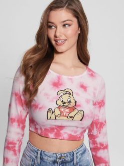 GUESS נשים חלק עליון גרפי של ארנב F8RV1278 לבוש בוקר ורוד מולטי