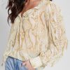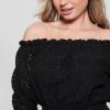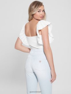 GUESS נשים חלק עליון עם שרוול פרפר ריינה אקולוגי F8RV1143 לבוש לבן שמנת