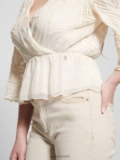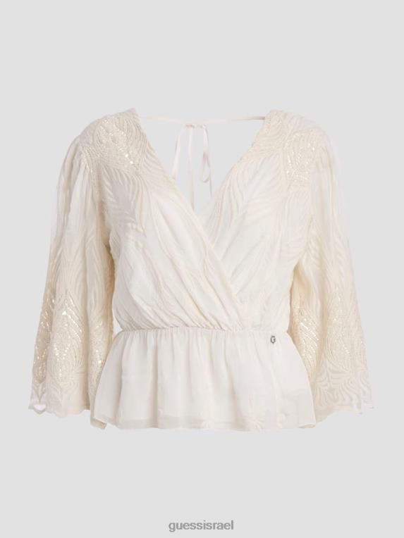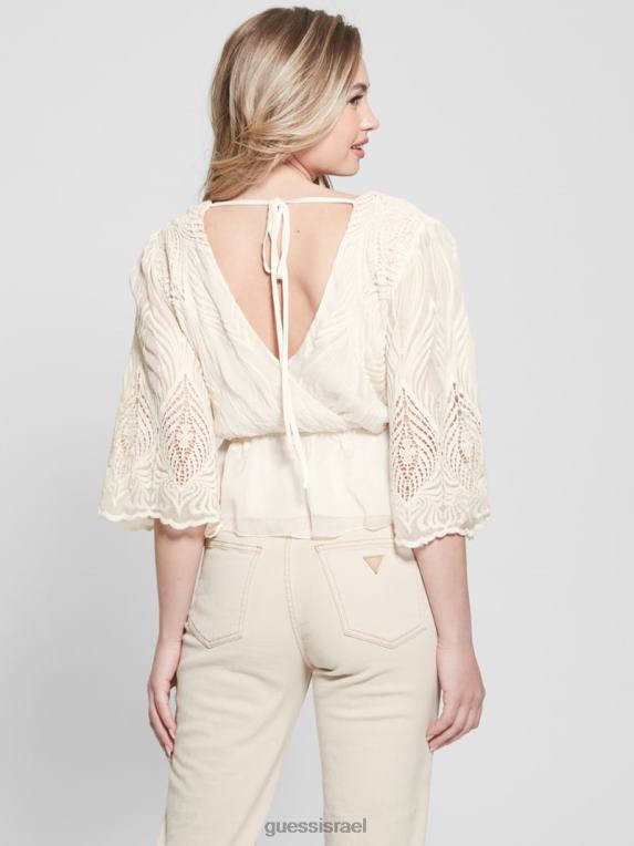 GUESS נשים חלק עליון רקום pam F8RV927 לבוש לבן שמנת
