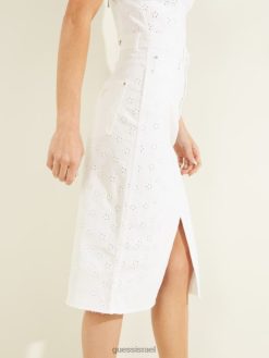 GUESS נשים חצאית ג’ינס של אמרסון F8RV248 לבוש לבן פלורידה