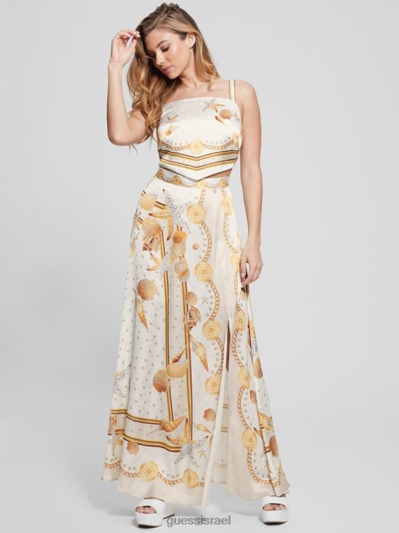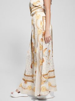 GUESS נשים חצאית מקסי של דורה סאטן F8RV2005 לבוש הדפס רב פגזים