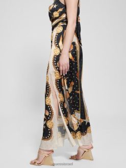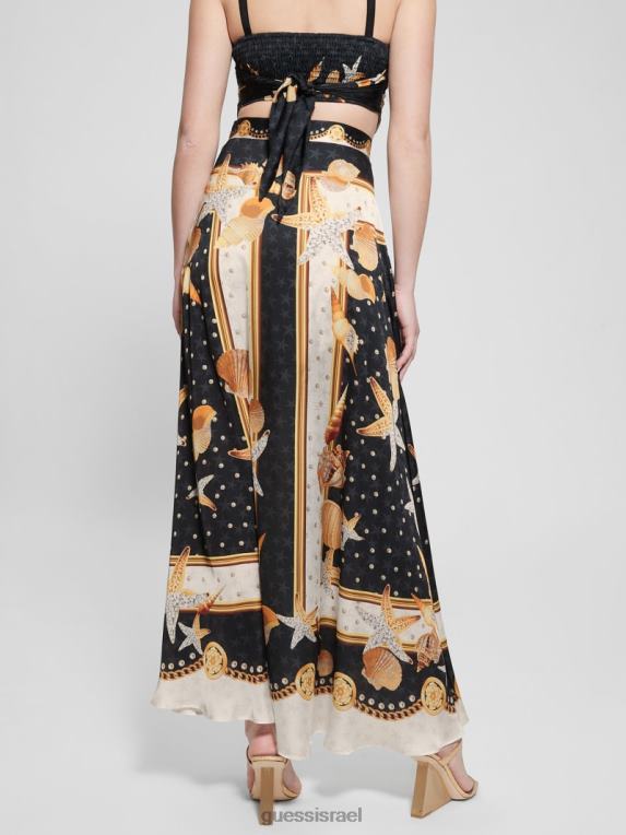 GUESS נשים חצאית מקסי של דורה סאטן F8RV2026 לבוש הדפס מעטפת שחור