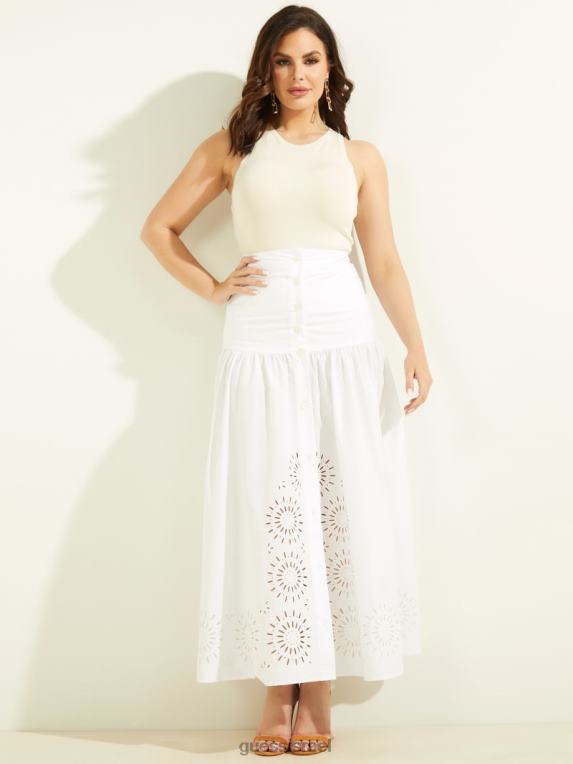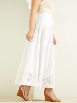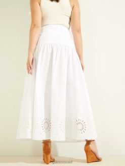 GUESS נשים חצאית מקסי של קאיה פופלין F8RV2359 לבוש בלאן פור