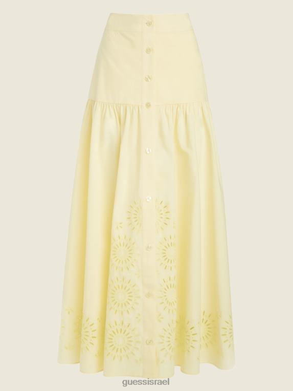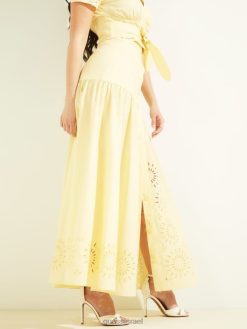 GUESS נשים חצאית מקסי של קאיה פופלין F8RV2436 לבוש משי תירס