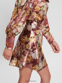 GUESS נשים חצאית סאטן אקולוגית של טארין F8RV2444 לבוש הדפס שטיח דיגיטלי מא