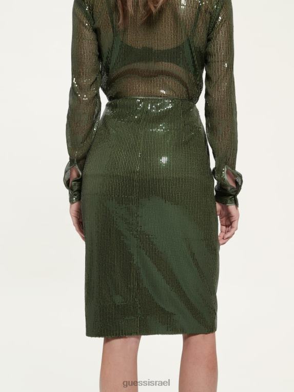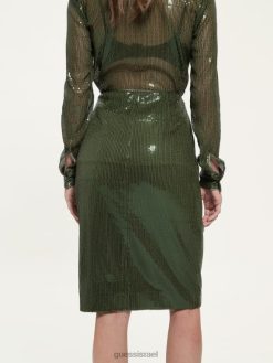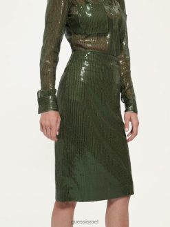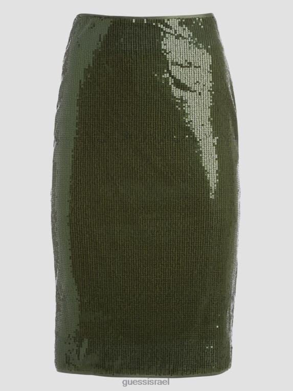 GUESS נשים חצאית פאייטים של מגאן F8RV2309 לבוש ירוק פיוטה
