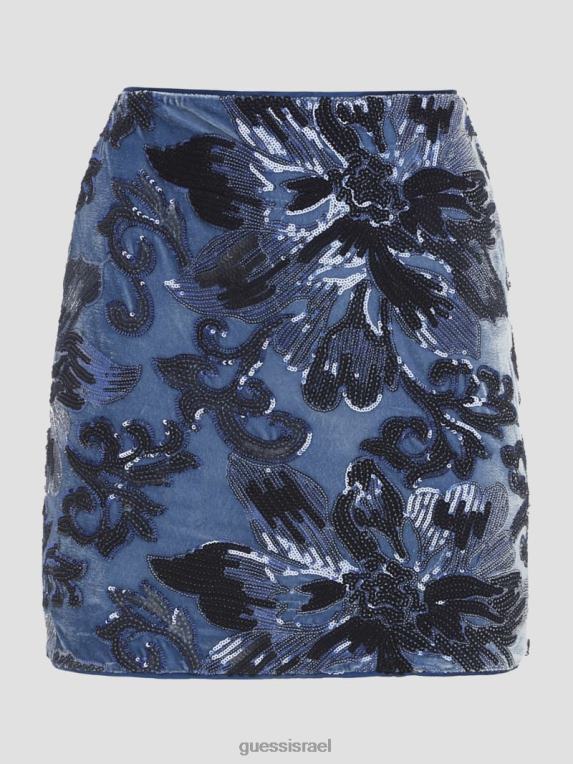 GUESS נשים חצאית קטיפה מעוטרת של ארנסטה F8RV2342 לבוש פאייטים כחולים פרחים