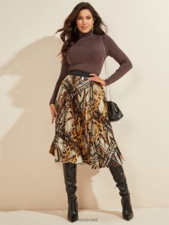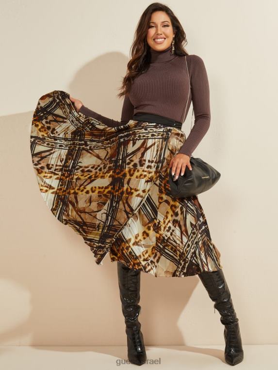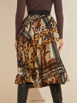 GUESS נשים חצאית קפלים בקווי נמר F8RV2321 לבוש קווי נמר