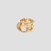 - גימור נועז למראה שלך, טבעת בגוון זהב עבה זו כוללת עיצוב מצולע, אבן מרכזית קריסטלית עגולה וחותמות quattro g כפולות בצדדים.