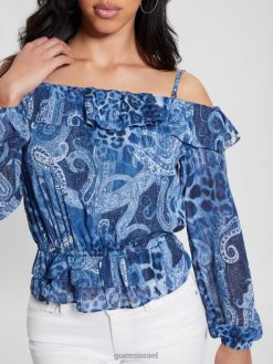 GUESS נשים טופ לוסי אקולוגי מחוץ לכתף F8RV1075 לבוש קשמיר הים הנורדי
